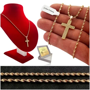 ➡️ Łańcuszek Singapur ➡️ Zawieszka krzyżyk ➡️ Eleganckie pudełko ➡️ Metka jubilerska ➡️ Złota tabliczka z własną dedykacją Wymiary: Długość łańcuszka: 45 cm (na pozostałych naszych aukcjach dostępne są inne długości) Szerokość łańcuszka: 2 mm Zawieszka: 2,8 cm x 1,8 cm (+oczko 7 mm) GRATISY OD FIRMY