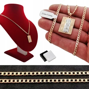 Złoty Łańcuszek Pancerka+Medalik Matka Boska 45Cm Prezent Na Komunię 18K