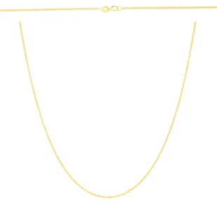 Materiał: Złoto Kolor złota: Żółte Próba: 585 Splot: Lisi ogon pełny Długość : 50 cm Szerokość: ok. 1,30 mm Waga: 2,48 g Łańcuszek idealny na prezent z okazji urodzin, imienin, jubileuszu lub innej okazji.