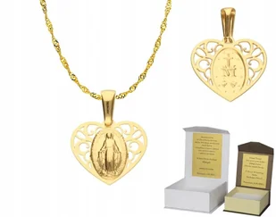 Przedmiotem sprzedaży jest złoty łańcuszek ( splot SINGAPUR ) wraz z widocznym na zdjęciu medalikiem - Cudowny Medalik w ażurowym sercu. Wybierając naszą ofe...