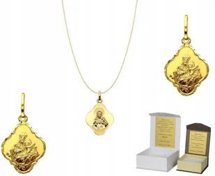 Złoty łańcuszek pr. 585 Medalik Szkaplerz Chrzest Komunia 50 cm AZ1MZ4