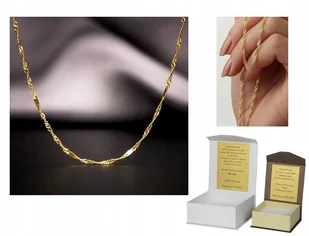 Przedmiotem sprzedaży jest pozłacany, srebrny łańcuszek o pięknym splocie singapur. Wyrób wykonany jest w całości z najlepszej jakości srebra próby 925, pozł...