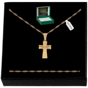 GHK 1569A-Singapur015-42cm W zestawie: ➡️ Łańcuszek singapur ➡️ Zawieszka krzyżyk ➡️ Eleganckie pudełko ➡️ Metka jubilerska ➡️ Złota tabliczka z własną dedykacją ➡️ Ściereczka do czyszczenia biżuterii Wymiary: Długość łańcuszka: 42 cm (na pozostałych naszych aukcjach dostępne są inne długości) Szerokość łańcuszka: 1,5 mm Zawieszka: