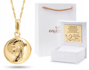 ZŁOTY NASZYJNIK Z MEDALIKIEM 585 Złoty komplet, medalik z łańcuszkiem w całości wykonany ze złota próby 585. Zestaw idealnie nadaje się na takie okazje jak C...
