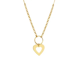 Przedstawiamy elegancki złoty naszyjnik damski o długości 45 cm, wykonany z wysokogatunkowego żółtego złota próby 585. Ten subtelny i wyjątkowy naszyjnik charakteryzuje się łańcuszkową konstrukcją, na której zawieszone jest piękne serce o wymiarach 10 mm x 10 mm oraz delikatny ring o średnicy 6 mm. Jego minimalistyczny design oraz użycie motywu serca czynią go idealnym dodatkiem dla każdej kobiety ceniącej klasykę i elegancję. Cała biżuteria oferowana przez galerię jubilerską LOVRIN jest starannie sprawdzona przez Urząd Probierczy, co gwarantuje najwyższą jakość. Dzięki swojej lekkości, ważącej jedynie 1,18 g, naszyjnik doskonale leży na szyi, dodając blasku każdej stylizacji.