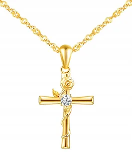 ZŁOTY NASZYJNIK KOMUNIA CHRZEST KRZYŻYK ŁAŃCUSZEK SREBRO POZŁACANE