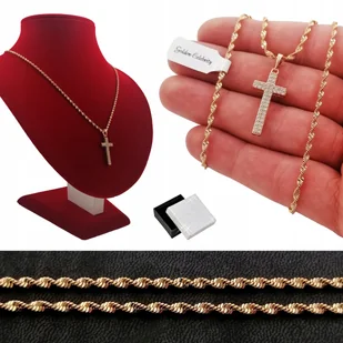 Złoty Singapur Skręcany+Krzyżyk Cyrkonia 60Cm 2Mm