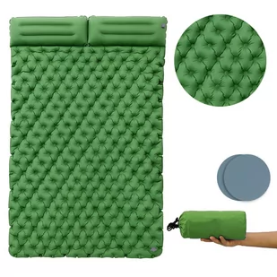 Podwójny dmuchany materac turystyczny z wbudowaną poduszką!Maleńki, lekki i kompaktowy materac, jednocześnie wygodny i skutecznie izolujący od zimnej podłogi? To możliwe!Świetnie sprawdzi się nie tylko w podróży, ale także, gdy w Twoim domu zabraknie łóżka dla gości. Wbudowana poduszka zapewnia dodatkowy komfort i nie zabiera dodatkowego miejsca!Jest na tyle szeroki, że spokojnie pomieści 2 osoby! Specyfikacja: ▶Kolor: zielony▶Wymiary nadmuchanego materaca: 195x120x7cm▶Wysokość poduszki: 14cm▶Wymiary złożonego materaca w pokrowcu: