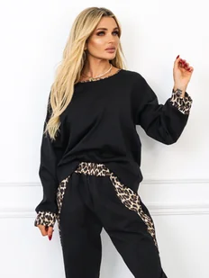 BAWEŁNIANY KOMPLET ZE WSTAWKAMI Z PANTERKI-CZARNYWymiary bluzki: Długość całkowita: 63 cm