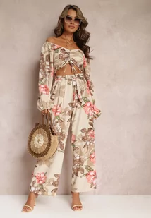 Beżowy 2-częściowy Komplet w Kwiaty Calaq
