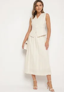 Beżowy Bawełniany Komplet Kamizelka i Rozkloszowana Spódnica Haleresa