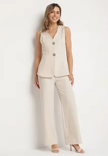 Beżowy Komplet Garniturowy Kamizelka z Ozdobnymi Guzikami i Spodnie Filuenna