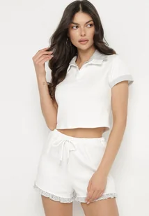 Biały Bawełniany Komplet Szorty i Bluzka Typu Polo Addoria