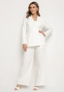 Biały Garnitur Dwurzędowa Marynarka z Usztywnionymi Ramionami i Spodnie Sonavitia