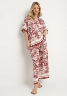 Bordowy Wiskozowy Komplet w Roślinny Wzór Koszula i Spodnie Ridissa