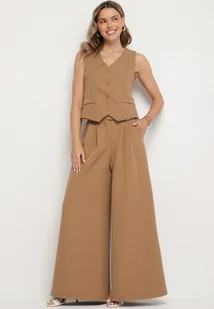 Jasnobrązowy Komplet Garniturowy Kamizelka i Szerokie Spodnie Ravitrae