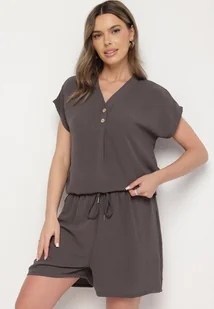 Ciemnoszary Komplet z Wiskozą Bluzka Zdobiona Guzikami i Szorty Nitamea
