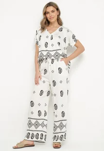 Czarno-Biały Bawełniany Komplet Koszula i Szerokie Spodnie w Stylu Boho Ollirive