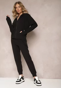 Czarny Komplet Dresowy 2-częściowy z Bluzą i Spodniami Seraphira
