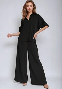 Czarny Komplet Koszula z Ozdobnymi Rękawami i Szerokie Spodnie Rivasene