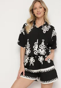 Czarny Komplet w Stylu Rustykalnym Koszula i Szorty Tosmire