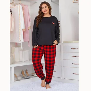 CECHY PRODUKTU: Komplet odzieży domowej W dwóch wersjach kolorystycznych Długie spodnie w kratę Koszulka z długim rękawem
