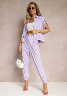 Fioletowy 2-częściowy Komplet z Bluzką i Spodniami Ezrala