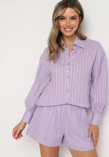 Fioletowy 2-cześciowy Komplet z Szortami i Elegancką Koszulą Alesa