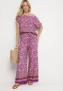 Fioletowy Komplet Bawełniany w Ornamentalny Wzór Spodnie i Bluzka Nanirienna
