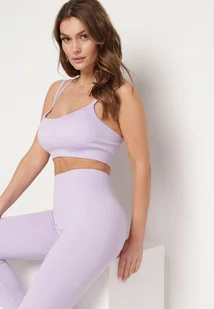 Fioletowy Komplet Sportowy Biustonosz na Ramiączkach i Legginsy z Gumką w Pasie Nadlira