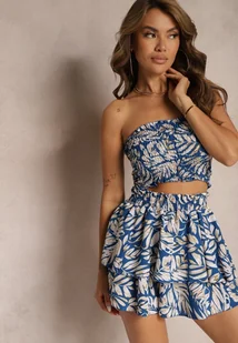 Granatowy Komplet 2-Częściowy Krótki Top bez Rękawów Szorty z Gumką w Pasie i Falbanką Riloa