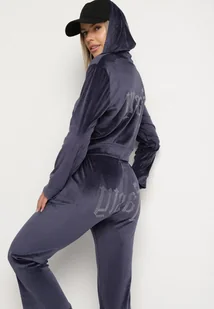 Granatowy Welurowy Komplet Dresowy z Cyrkoniową Aplikacją Bluza i Spodnie Mitene