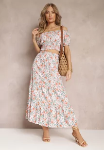 Jasnobeżowy Bawełniany Komplet 2-częściowy w Kwiaty Malenis