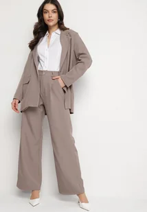 Jasnobrązowy Komplet Garniturowy Marynarka i Szerokie Spodnie Eleanisse