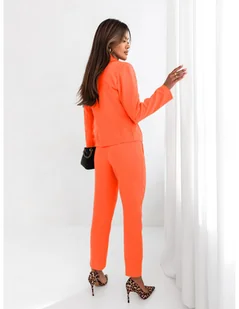 Modny garnitur z cygaretkami ZAHRA - orange Podkreśl swoją pewność siebie i styl w eleganckim damskim garniturze, który łączy klasykę z nowoczesnymi detalami! Marynarka z podszewką i efektownymi złotymi guzikami dodaje szyku każdej stylizacji, a patki imitujące kieszenie podkreślają jej minimalistyczny charakter. Spodnie typu cygaretki z kieszeniami perfekcyjnie dopasowują się do sylwetki, zapewniając komfort i elegancję. Ten garnitur to doskonały wybór na formalne spotkania w pracy, biznesowe lunche, czy ważne okazje, na których chcesz wyglądać profesjonalnie i stylowo. Zestaw go z klasycznymi szpilkami i delikatną biżuterią, aby stworzyć kompletną stylizację do biura. Na wieczorne wyjście wystarczy dodać efektowną kopertówkę i odważniejsze dodatki, by nadać mu nieco więcej charakteru.