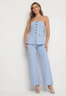 Niebieski Komplet Top z Baskinką i Ozdobnymi Guzikami i Szerokie Spodnie Palesia