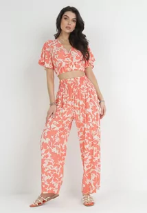 Pomarańczowy 2-częściowy Komplet w Kwiaty z Wiskozy Onisa