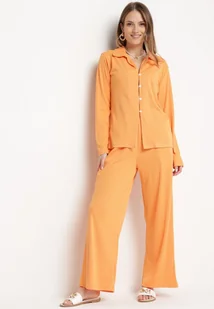 Pomarańczowy 2-częściowy Komplet z Koszulą i Szerokimi Spodniami Anscuro