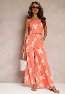 Pomarańczowy 2-częściowy Komplet z Szerokimi Spodniami i Topem Esseza