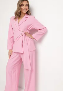 Różowy Garnitur Marynarka Kopertowa i Szerokie Spodnie Loose Milbia