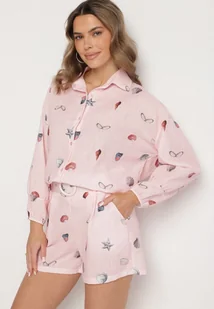 Różowy Komplet z Wiskozą Koszula i Szorty z Motywem Morskim Reivienne