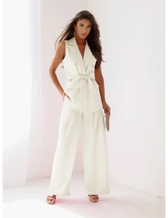 Dodaj delikatną biżuterię, aby nadać całości lekkości. Zestaw kamizelkę i spodnie z dopasowanym topem oraz szpilkami. Uzupełnij look dużą torebką i efektownymi kolczykami. Stylowy komplet kamizelka i spodnie ARAS to must-have w Twojej garderobie. Zainwestuj w swój wyjątkowy styl i poczuj się pewnie w każdej sytuacji! Stylowy komplet w kolorze białym idealny na specjalne okazję.