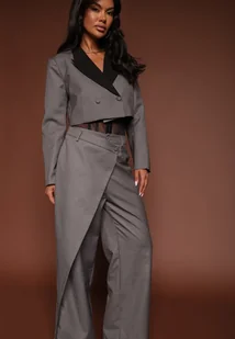 Szary Komplet Garniturowy z Krótką Marynarką i Asymetrycznymi Spodniami Remilena