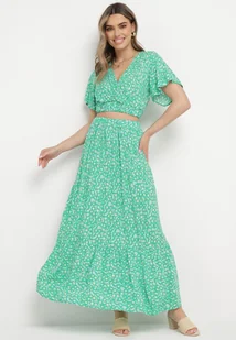 Zielony Komplet z Wiskozy Kopertowy Top i Spódnica Maxi Agardia
