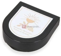 Pudełko na różaniec IHS w formie U - czarne Wykonanie: tworzywo sztuczne + naklejka Wysokość: 6,3 cm Szerokość: 5,9 cm