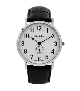 Jej kształt jest Okrągły i idealnie komponuje się z dopasowanym paskiem, którego materiał wykonania - wysokiej jakości skóra naturalna - gwarantuje komfortowe użytkowanie. Tarcza w tym modelu ma kolor biały, a pełne godziny zostały oznakowane przez indeksy i cyfry arabskie, dzięki czemu zegarek Adriatica A1113. 5223Q jest czytelny. Tarczę tego czasomierza chroni szkło mineralne, odporne na delikatne przerysowania . Ten zegarek szwajcarski posiada wodoszczelność 3ATM - jest odporny na zachlapania np.
