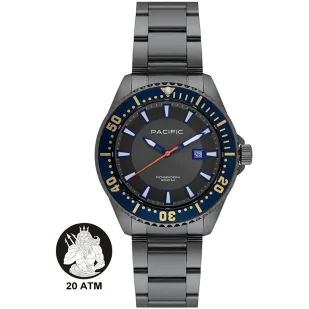 Pacific Poseidon SMPB-2001-08 szary męski zegarek na bransolecie wodoodporny 200M