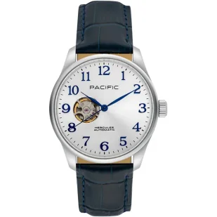 Pacific SAMA-1701-02 Automat srebrno-niebieski męski zegarek open heart