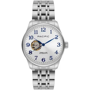 Pacific SAMB-1701-02 Automat srebrny męski zegarek na bransolecie open heart
