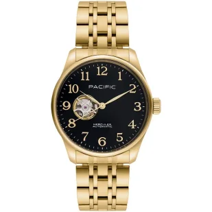 Pacific SAMB-1701-04 Automat złoto-czarny męski zegarek na bransolecie open heart